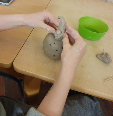 Mit Spiel und Spaß erobern wir die Welt rund um den Ton. Jedes Kind töpfert eine Keramik ( max. 15 x 15 cm).